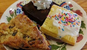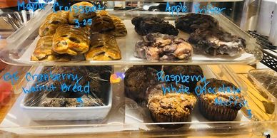 We serve our full coffee menu, pastries, chicken salad, sandwiches